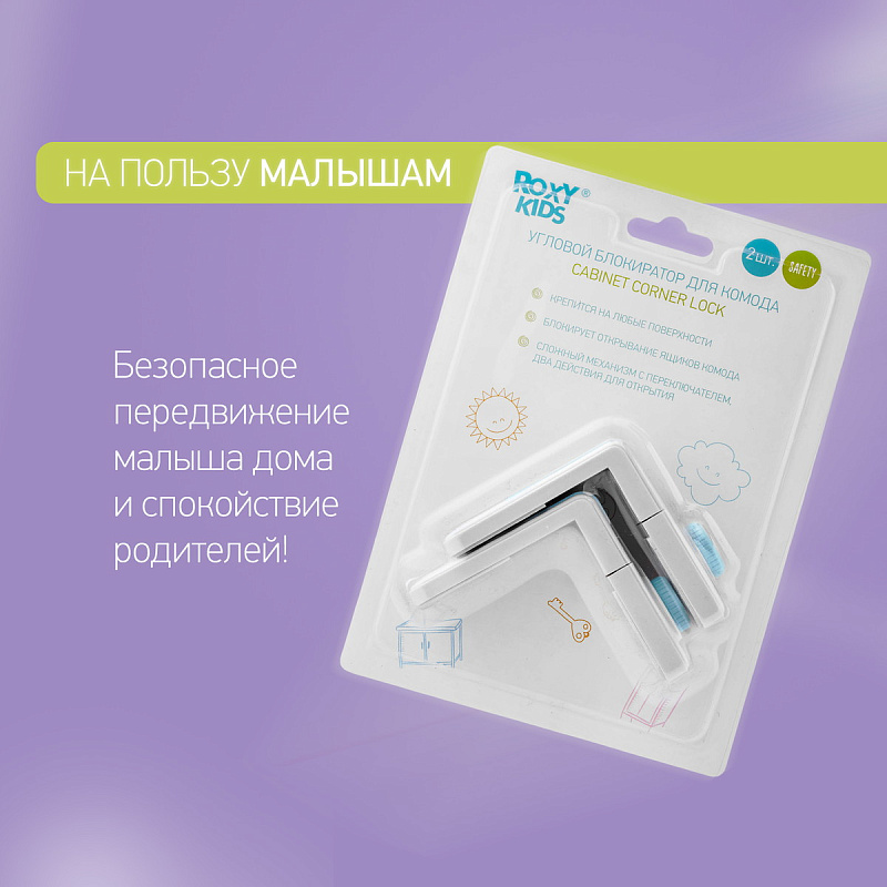Многофунциональный угловой блокиратор для выдвижных ящиков и шкафов ROXY-KIDS обезопасит малыша от прищемления пальчиков ящиками комода. Он не позволит ребенку проникнуть в «запрещенные» места, где лежит косметика, бытовая химия, лекарства и т.д. Легко крепится на любые типы поверхностей при помощи двухстороннего скотча. Имеет неброский дизайн, поэтому не привлечет дополнительного внимания ребенка.