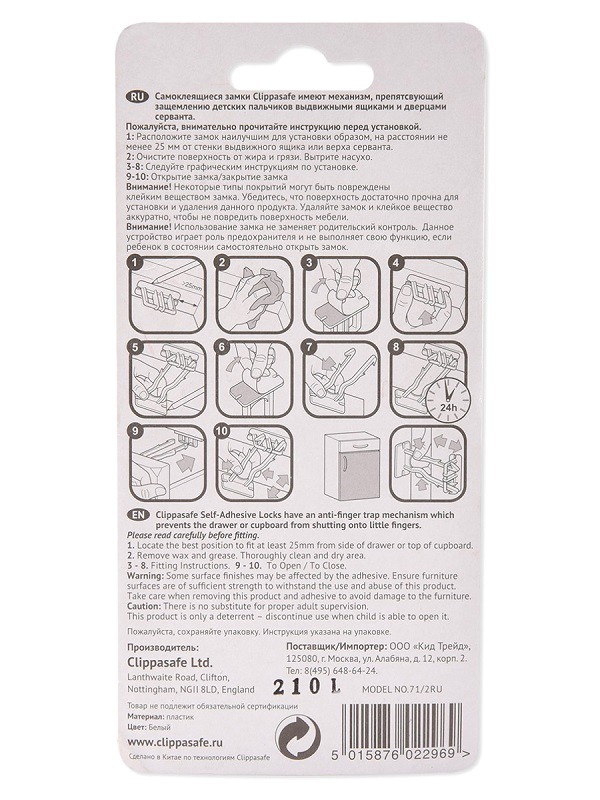 Блокиратор выдвижных ящиков Clippasafe для игрушек 2 шт. белый