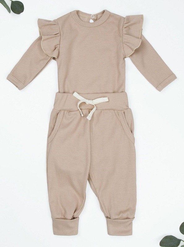 Боди AmaroBaby Fashion с длинным рукавом и ползунки бежевый 56