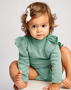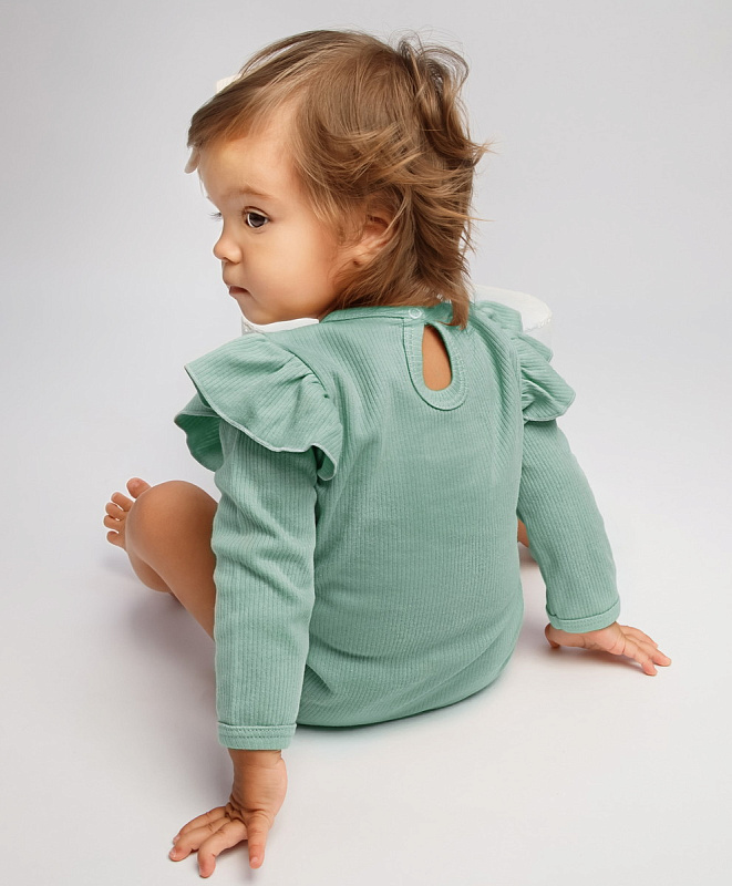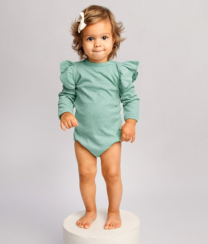 Боди AmaroBaby Fashion с длинным рукавом с рюшами ЧЗ зеленый 62