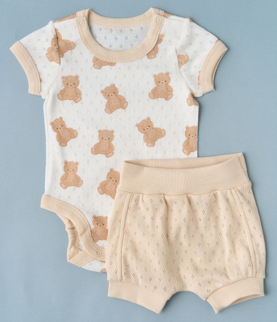 Боди c шортиками ажур Little Star 715202 мишки, крем/бежевый 62