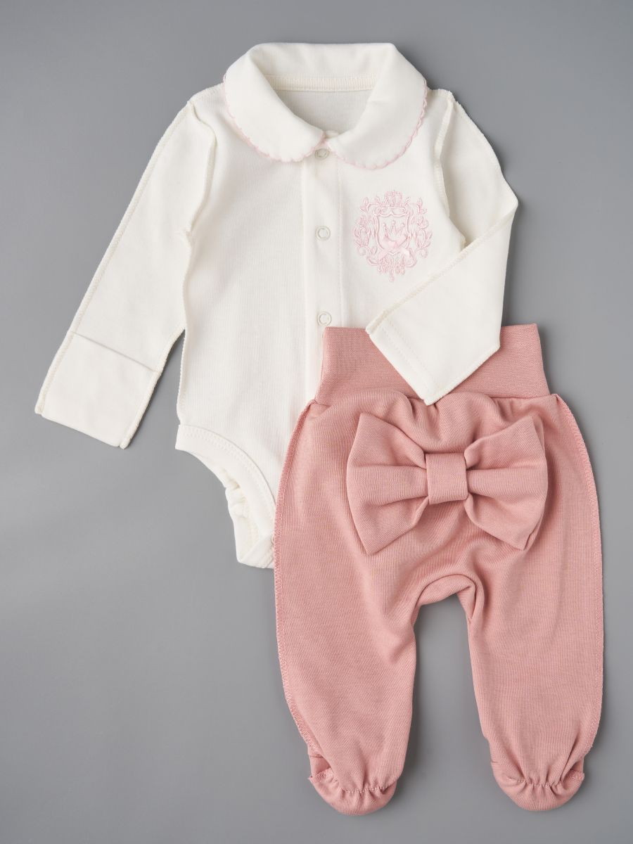 Боди и ползунки Little Star Герб Корона интерлок 72211 белый/пудра 56