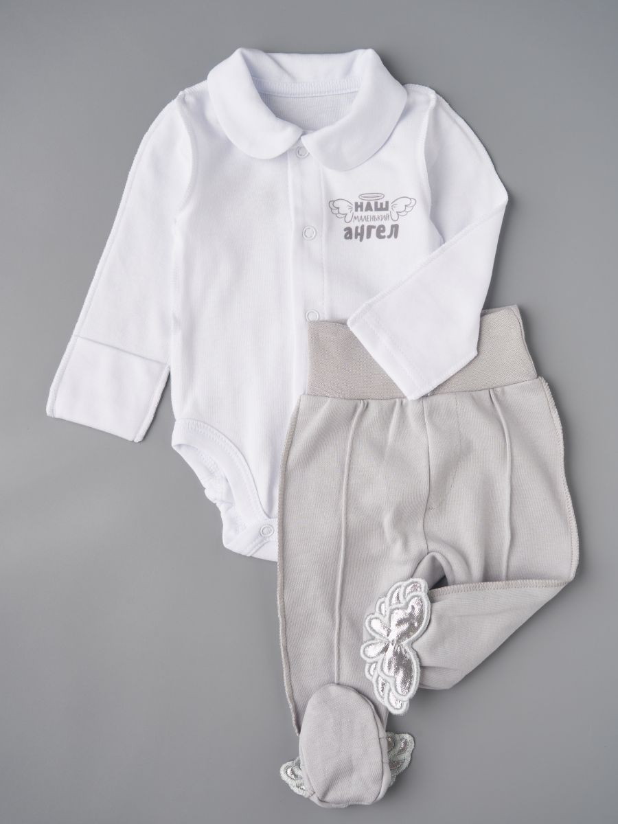 Боди и ползунки Little Star Наш маленький Ангел интерлок 72212 белый/серый 62