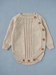 Вязаный комплект из 2х предметов - выполнен из смесовой пряжи с хлопком, мериновой шерстью и ПАН-ом. Хлопок придает изделиям нежность, шерсть делает их мягкими и теплыми, а ПАН - неприхотливыми в уходе. Рекомендуем данный комплект для выписки из роддома, в качестве подарка близкому человеку, а также для ежедневного использования. В комплект входит боди на пуговках и вязаные ползунки. Пряжа используемая в наших изделиях, отличается безупречным качеством и маркирована международным знаком «WOOLMARK»