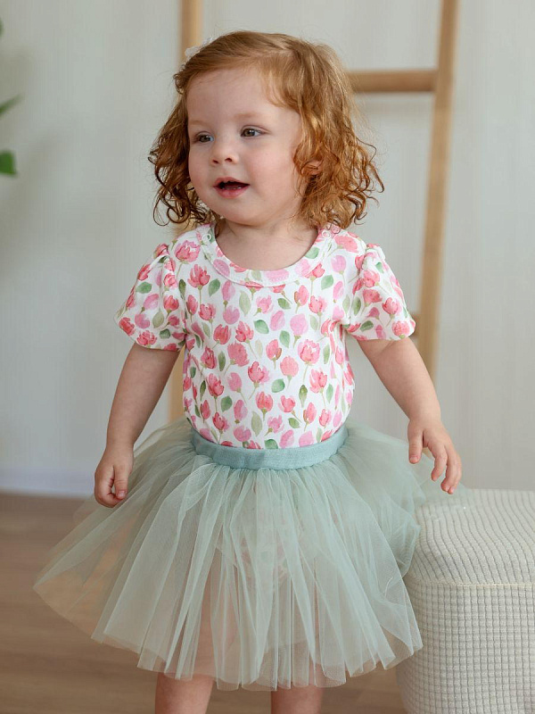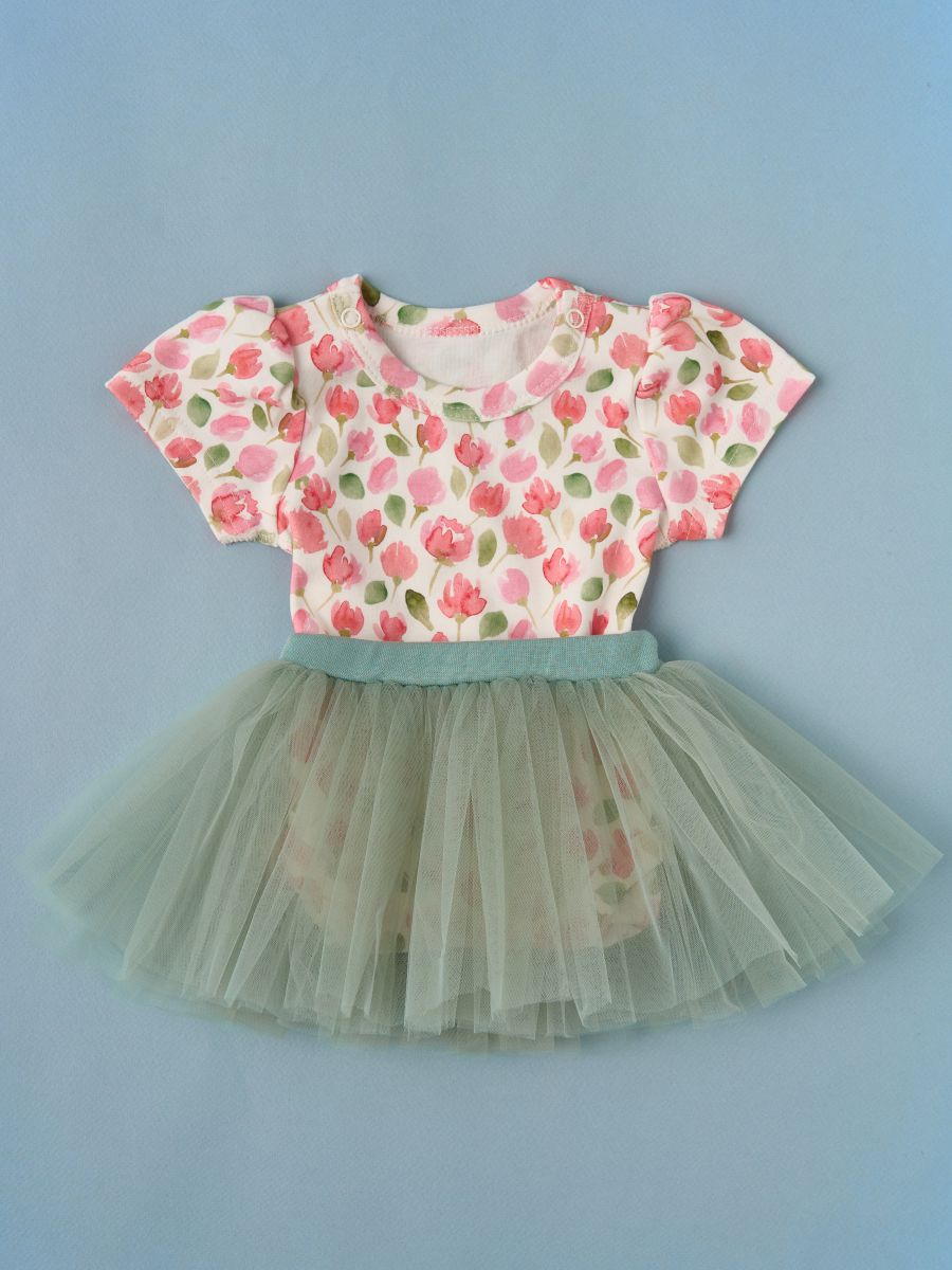 Боди короткий рукав и юбочка Little Star Тюльпаны 715116 (ЧЗ-мз) крем/олива 62