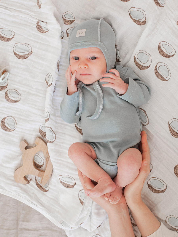 Боди Mjölk [мьёльк] растягивается по фигуре, ребёнку в нём не жарко, он не потеет. В такой одежде можно играть и спать круглый год, поддевать её под комбинезон или спальный мешок. Материал приятный на ощупь, эластичный, гигроскопичный, "дышит" и не вызывает аллергии. Кнопки расположены значительно выше их привычного месторасположения, что облегчает застёгивание изделия на малыше. В сопутствующих товарах можно подобрать изделия в комплект с таким же принтом: мягкую шапочку с узелком, двусторонний плед, сет пелёнок в тон или яркий комбинезон.
