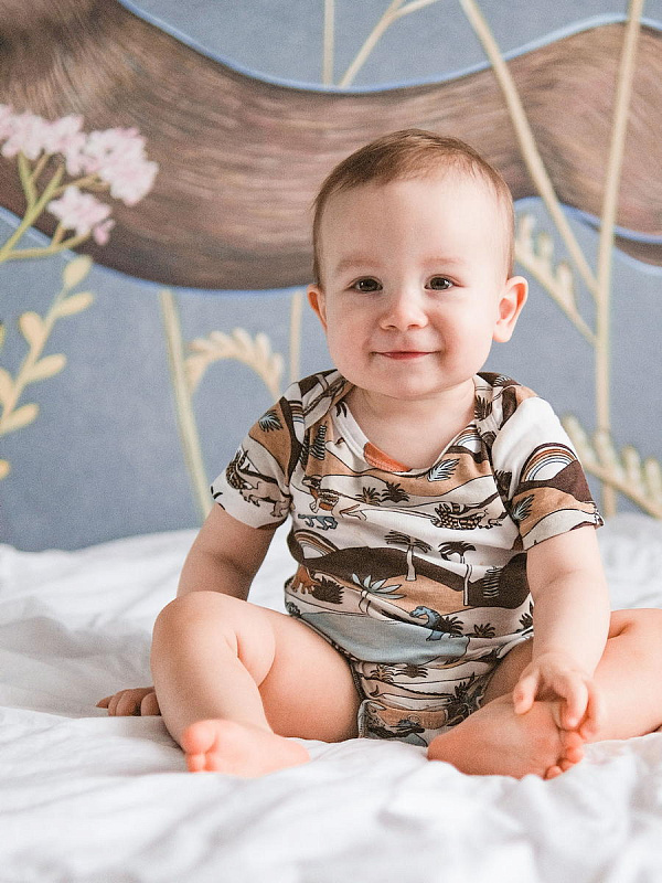 Боди Mj?lk [мьёльк] Dinoworld с коротким рукавом выполнен из тонкого 100% трикотажного хлопка. Плетение нитей в этой ткани менее плотное, чем у другой одежды из нашей коллекции, что позволяет комфортно использовать боди в качестве первого слоя.