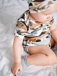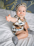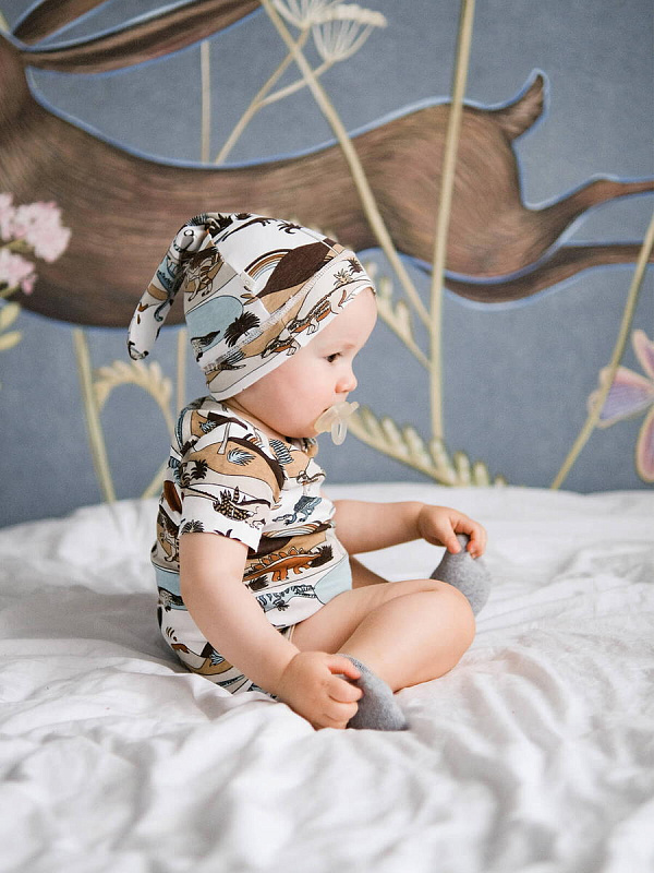 В сопутствующих товарах можно подобрать изделия в комплект с таким же принтом: мягкую шапочку с узелком, двусторонний плед, сет пелёнок в тон или яркий комбинезон.