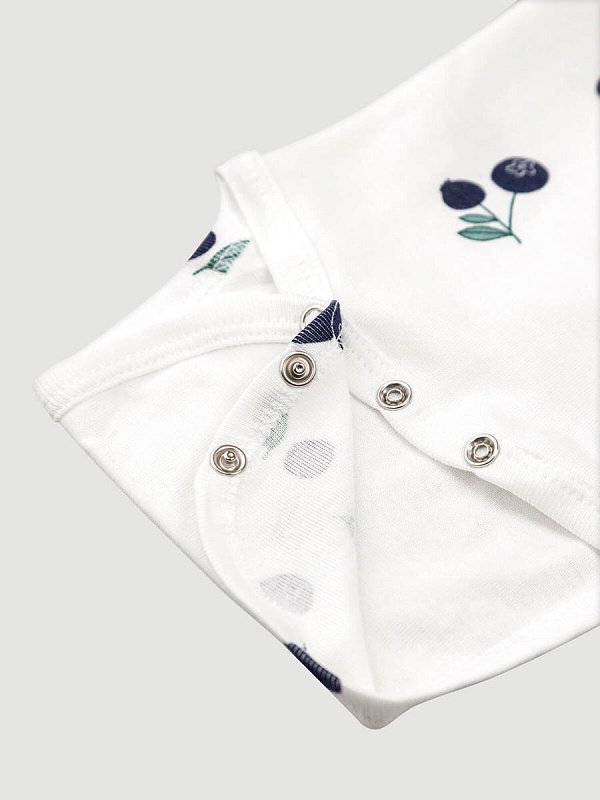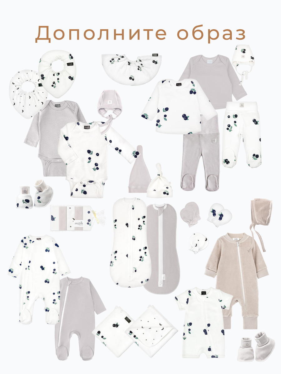 Боди Mjölk [мьёльк] растягивается по фигуре, ребёнку в нём не жарко, он не потеет. В такой одежде можно играть и спать круглый год, поддевать её под комбинезон или спальный мешок. Материал приятный на ощупь, эластичный, гигроскопичный, "дышит" и не вызывает аллергии. Кнопки расположены значительно выше их привычного месторасположения, что облегчает застёгивание изделия на малыше. В сопутствующих товарах можно подобрать изделия в комплект с таким же принтом: мягкую шапочку с узелком, двусторонний плед, сет пелёнок в тон или яркий комбинезон.