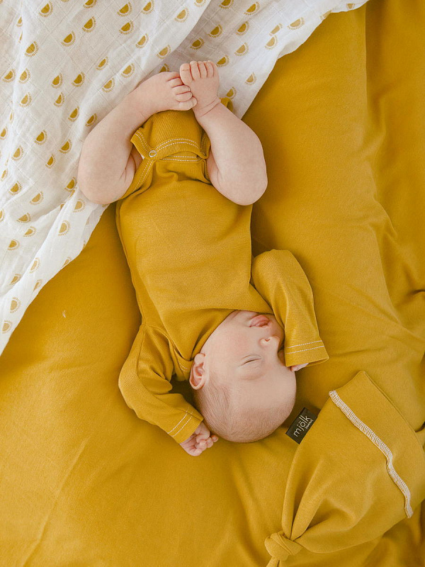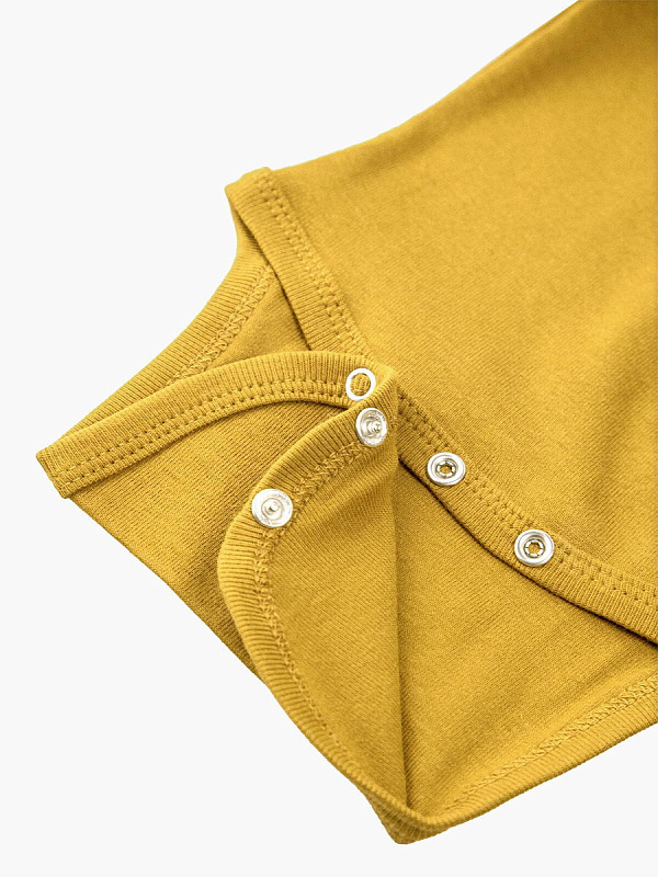 Боди Mjölk [мьёльк] Mustard с длинным рукавом выполнен из тонкого 100% трикотажного хлопка. Плетение нитей в этой ткани менее плотное, чем у другой одежды из нашей коллекции, что позволяет комфортно использовать боди в качестве первого слоя.