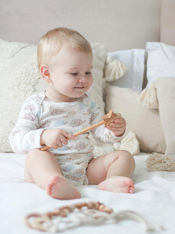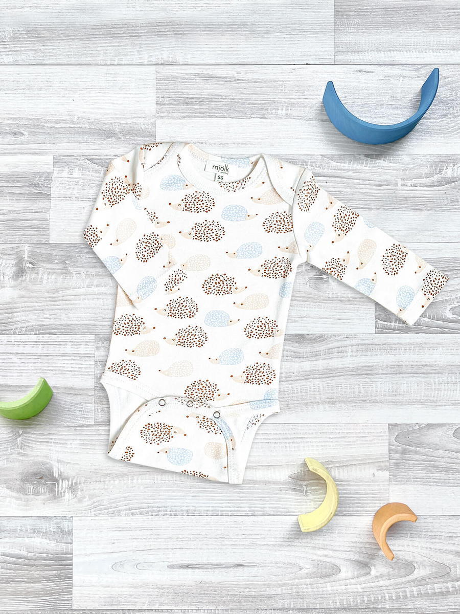 Боди Mjolk Ёжики на экрю с длинным рукавом 56
