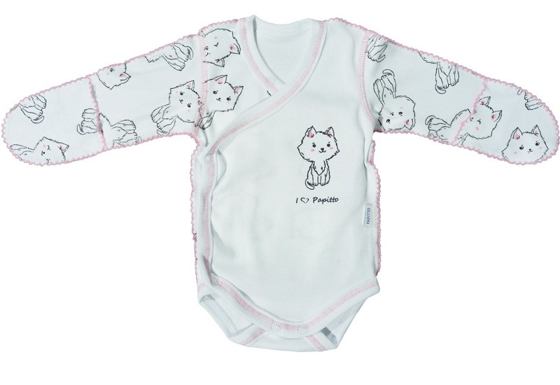 Боди Папитто Верные друзья Котенок с запахом с з/ручками 733 розовый 50