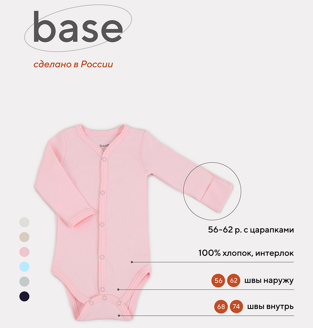 Стильная коллекция Base - это трендовые монохромные цвета (от нежных пастельных до глубоких темных), качественная фурнитура в тон и хлопок премиум класса (интерлок-пенье).