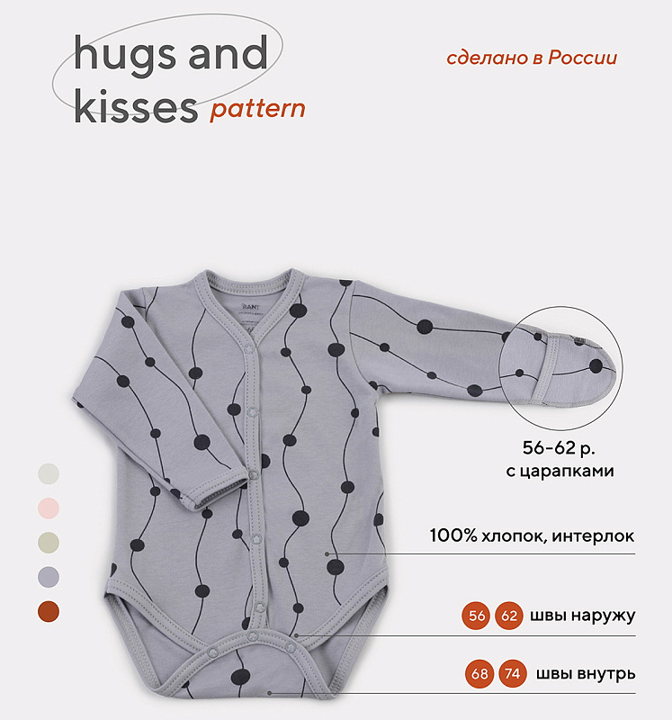 - Свежая коллекция Hugs and kisses Pattern покажет вашу нежность и заботу. Отдельного внимания заслуживают абстрактные принты, с любовью разработанные нашими дизайнерами. Прибавьте к этому лаконичный стиль, актуальные цвета, качественную фурнитуру в тон и хлопок премиум класса (интерлок-пенье)
