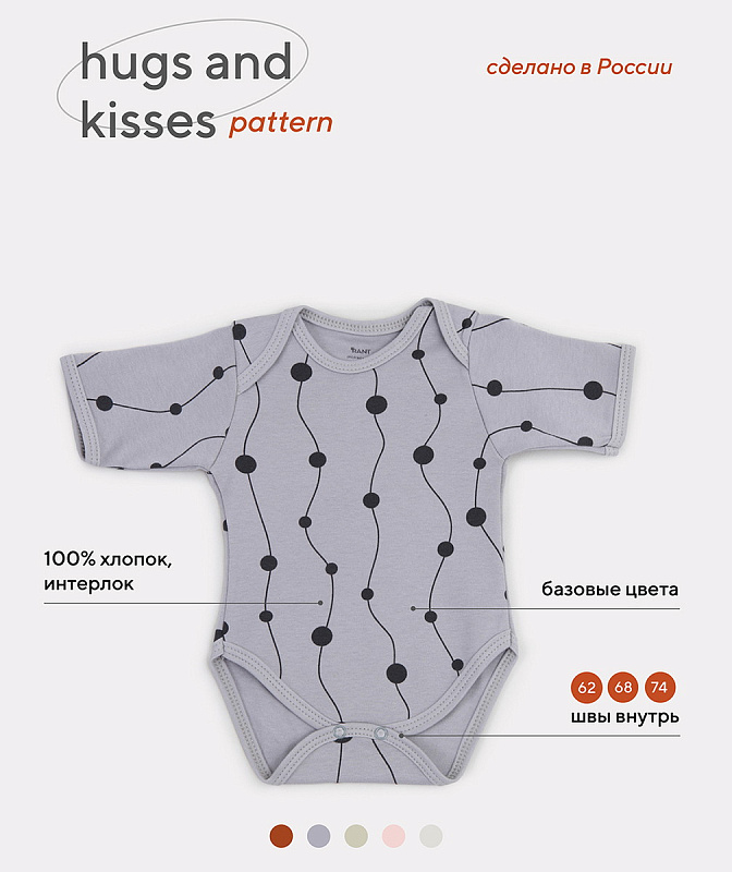 - Свежая коллекция Hugs and kisses Pattern покажет вашу нежность и заботу. Отдельного внимания заслуживают абстрактные принты, с любовью разработанные нашими дизайнерами. Прибавьте к этому лаконичный стиль, актуальные цвета, качественную фурнитуру в тон и хлопок премиум класса (интерлок-пенье)