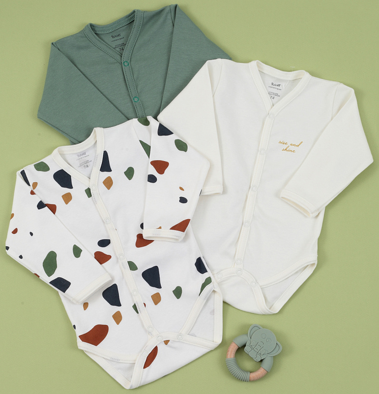 Боди Rant Mosaic с длинным рукавом на кнопках 6775/6475 3 шт Green 80