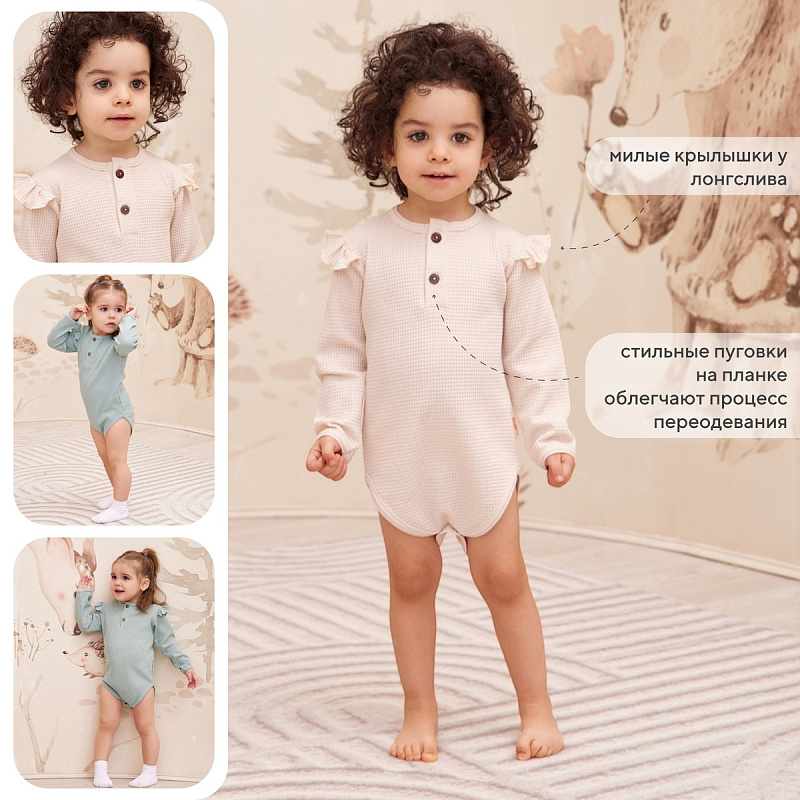 Боди Rant Waffy с длинным рукавом для девочки 5-92 Milk-Mint 86