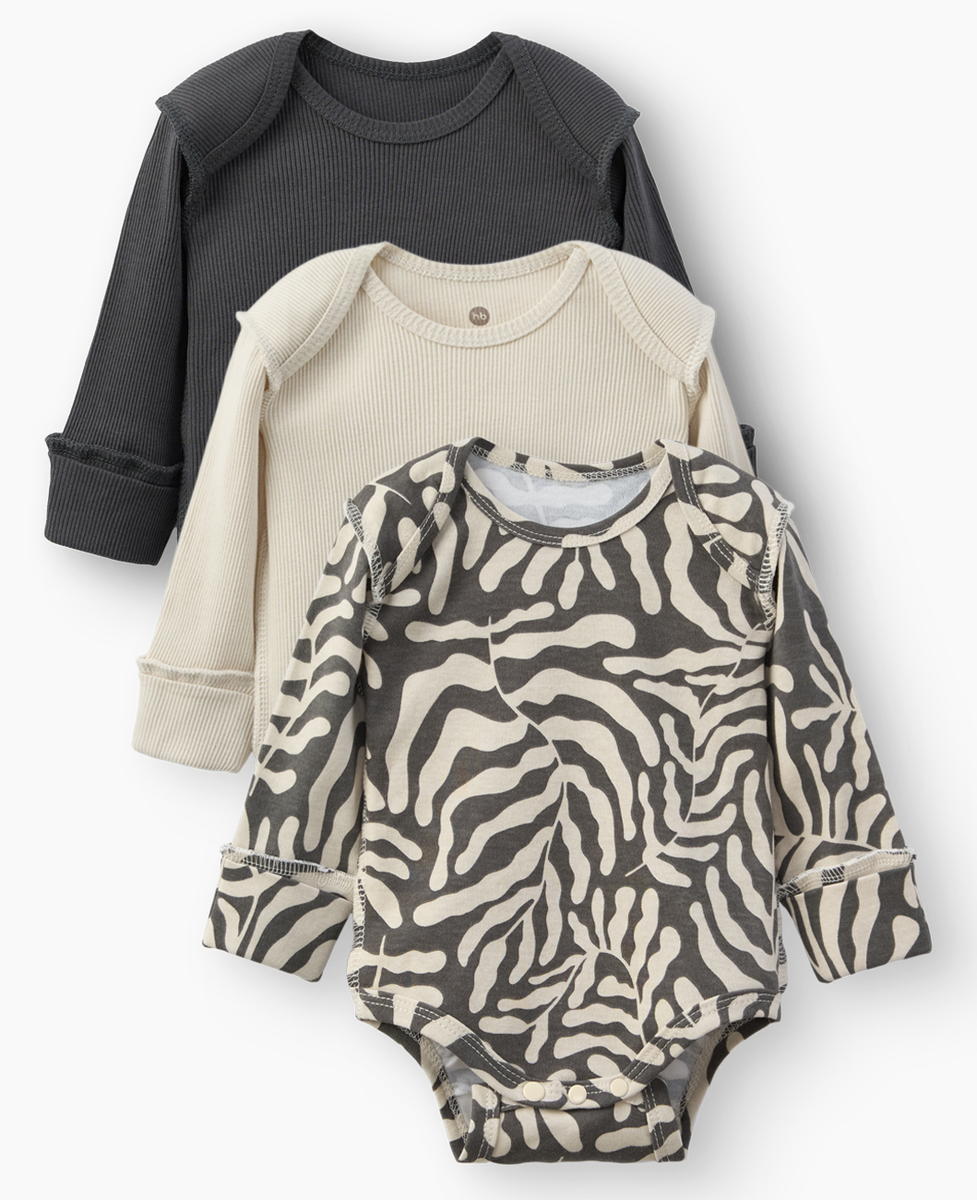Боди с длинным рукавом Happy Baby 3 шт. 90132-0 ЧЗ листочки/leaves 56