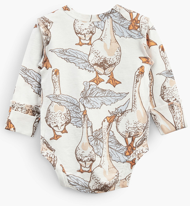 - раскрывающийся воротник позволит быстро одеть малыша, не причиняя ему дискомфорт, а застёжка снизу облегчает смену подгузника
