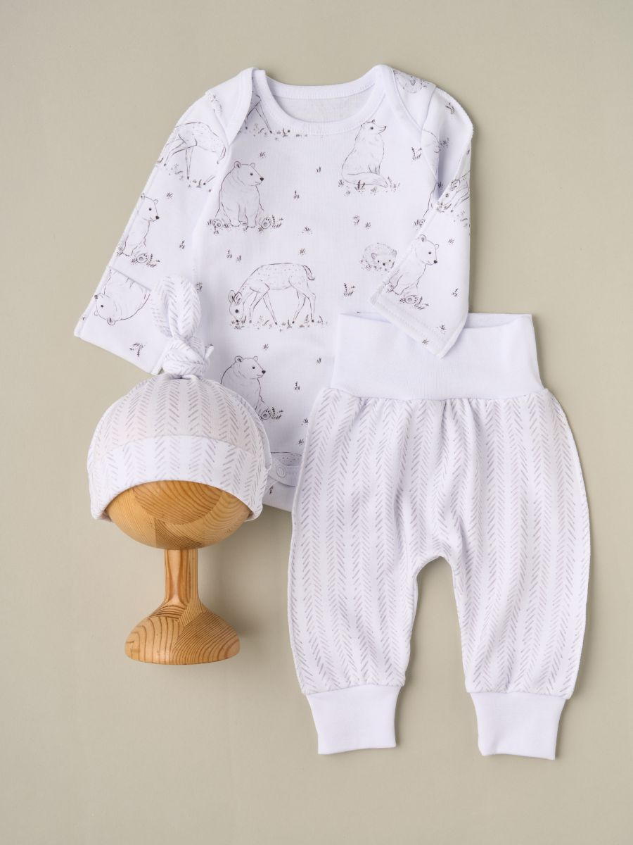 Боди, штанишки, котелок Little Star 728126 лесные звери, белый 56