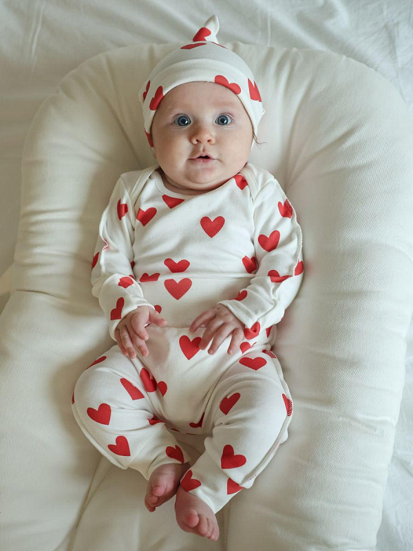 Боди, штанишки, узелок Little Star Сердечки 728126 (ЧЗ-мз) крем 62