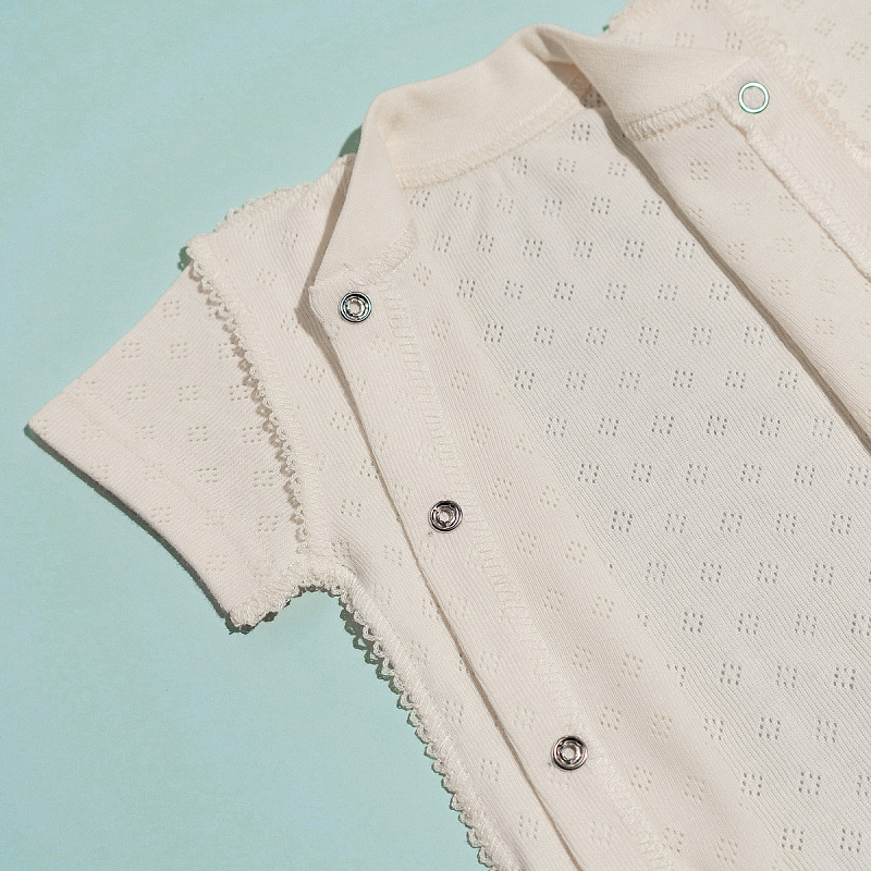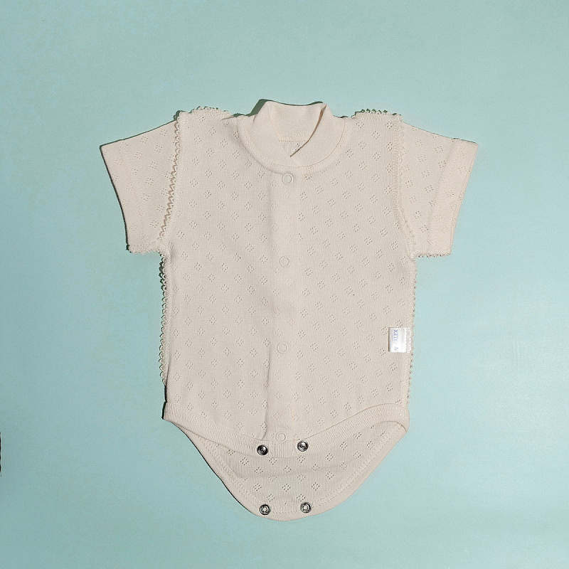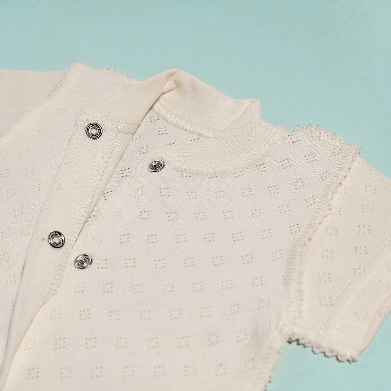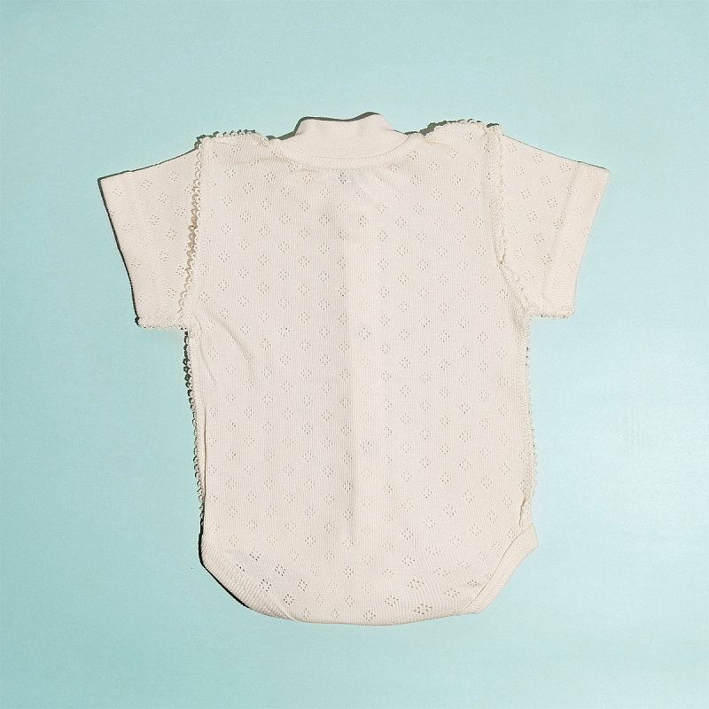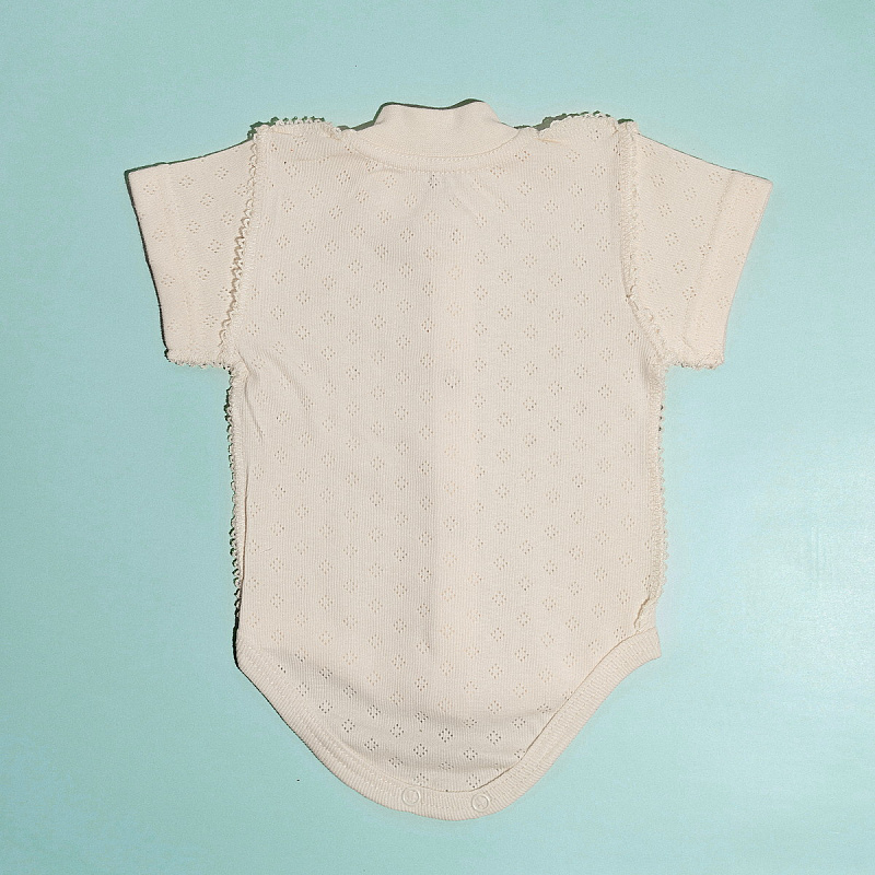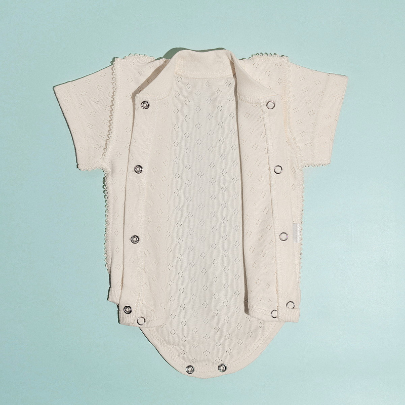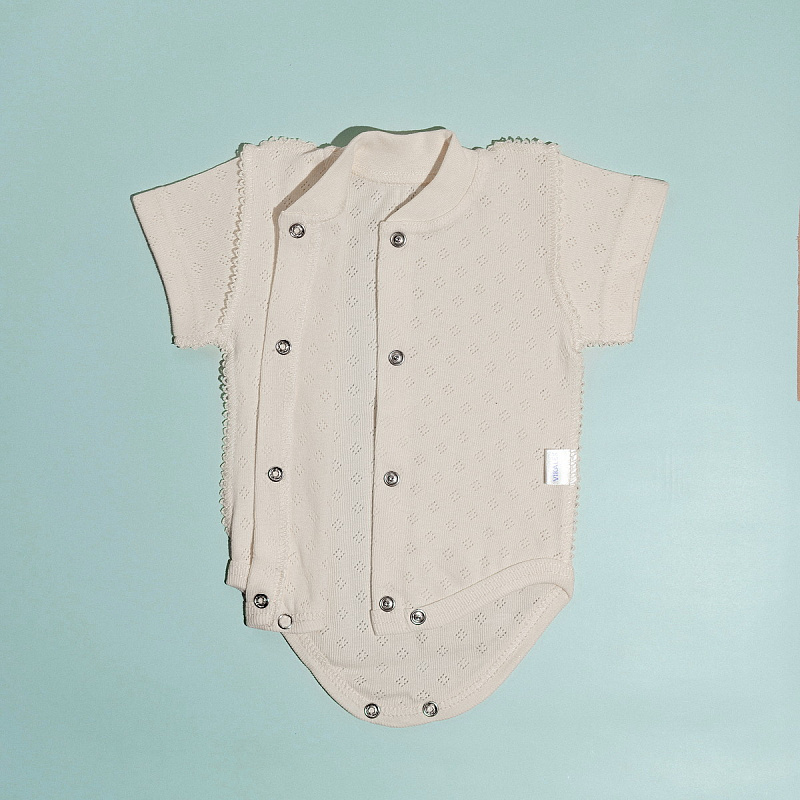 Классическая модель с короткими рукавами и застёжкой на левом плече и внизу позволит быстро сменить подгузник, не снимая изделие полностью.