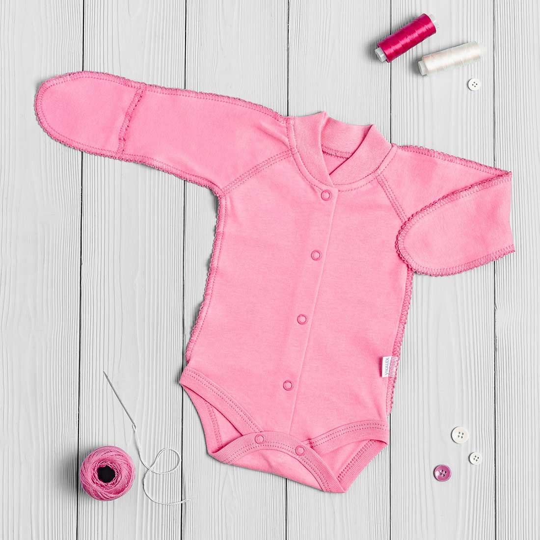 Удобное боди легко надеть на ребёнка благодаря застёжке по всей длине. Модель со швами наружу, которые не будут доставлять малышу неудобств. Проймы для ног отделаны кантом. Изделие из натуральной дышащей ткани.