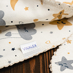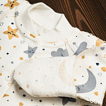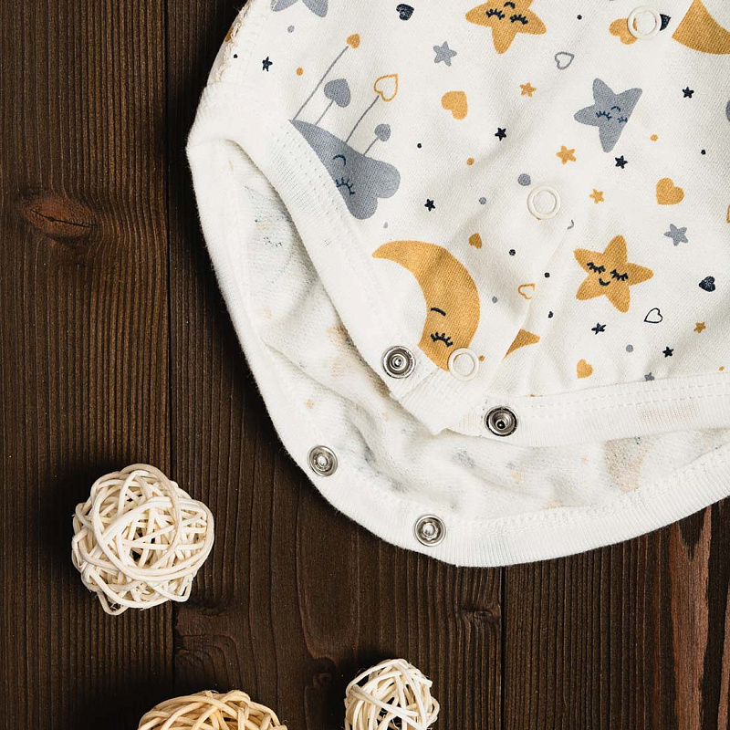 Боди выполнено из хлопкового футера с мягким начесом внутри. Застежка на кнопочки спереди по всей длине и между ножек позволит легко одеть малыша, а также сменить ему памперс, не снимая боди полностью. Рукава имеют манжеты-трансформеры для возможности закрыть ручку малыша от царапания. Чтобы не травмировать нежную кожу ребенка, все швы выполнены наружу на четырехниточном оверлоке качественными нитками в тон полотна. Боди также оформлен фирменным флажком с надписью Vikalex - это не только элемент декора, но и знак качества изделия.