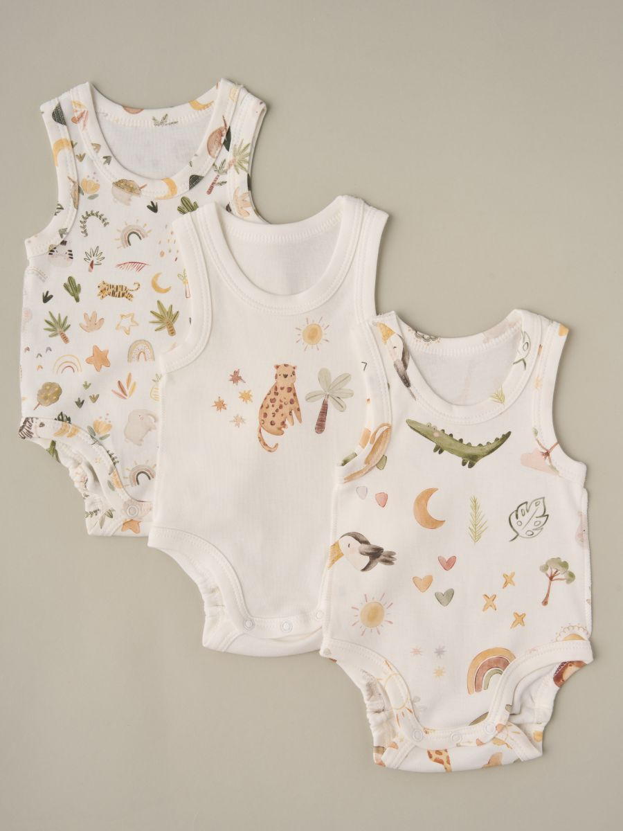 Боди-маечка Little Star Лео-сафари-тропики 3 шт 704-3 (ЧЗ-мз) кремовый 62