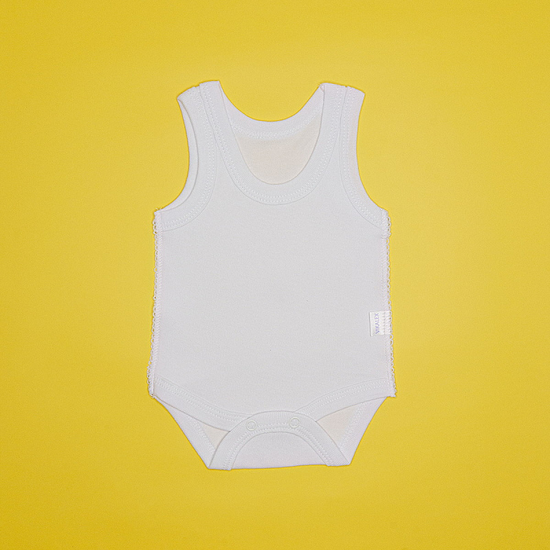 Удобное боди легко надеть на ребёнка благодаря застёжке на кнопках внизу. Модель со швами наружу, которые не будут доставлять малышу неудобств. Проймы для ног и горловина отделаны кантом. Изделие из натуральной дышащей ткани.