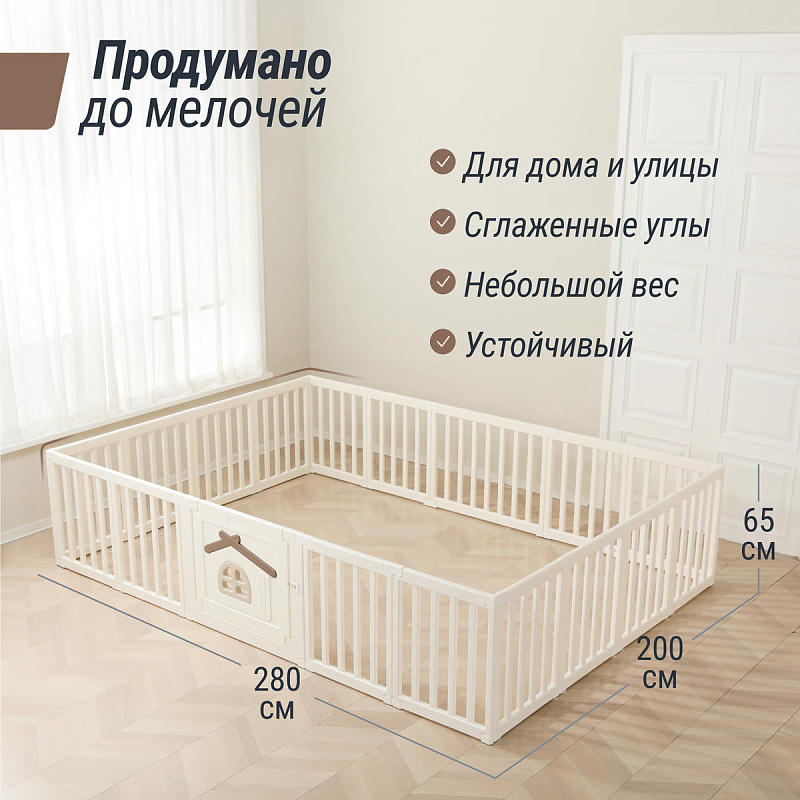 Все поверхности и высота манежа спроектированы таким образом, чтобы максимально обезопасить ребенка от ушибов. Надежная конструкция, специальный фиксатор двери (входа в манеж), прочные соединители секций, противоскользящие опоры и специальные присоски создают идеальные условия для комфортного и безопасного времяпрепровождения юных исследователей мира. Манеж легко хранить и перевозить, его сборка занимает 5-10 минут и не требует специальных инструментов. Приобретая игровой манеж UNIX Kids, вы создаете собственное уютное пространство для вашего малыша с заботой о его безопасности!