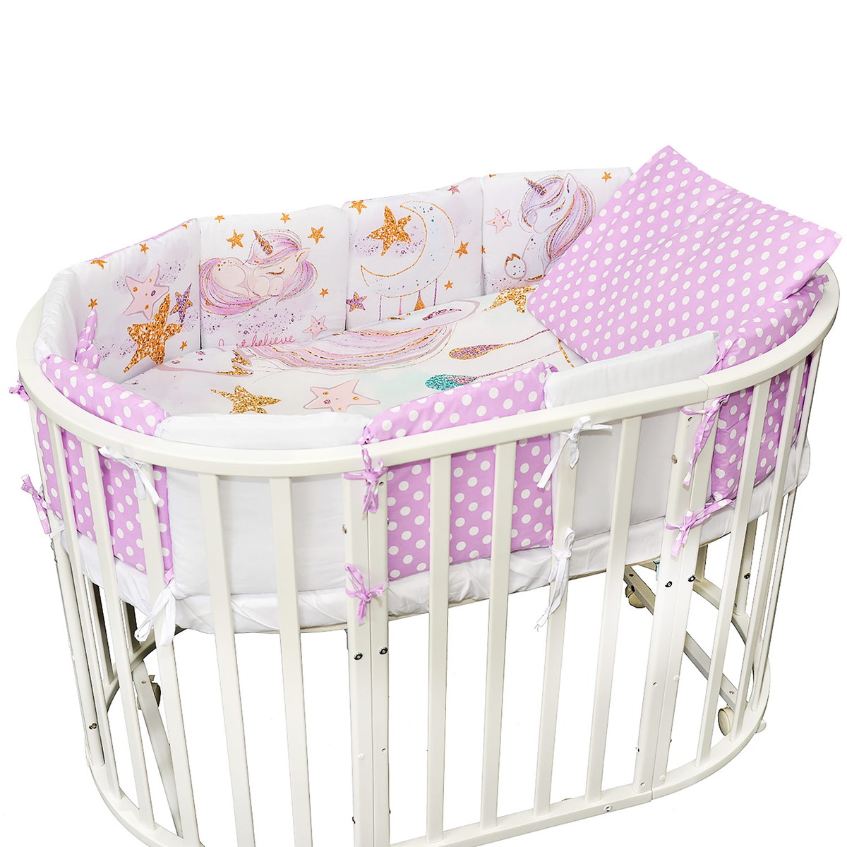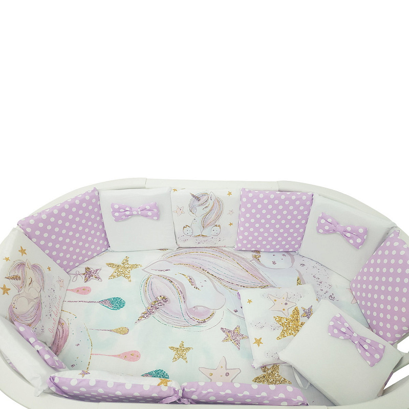 Бортик из подушечек идеально подойдет для любой кроватки (классической, круглой или овальной). На каждой подушечке - специальные завязки, которые позволят легко закрепить их к стенкам мебели. Съемные чехлы на молнии (для удобства стирки) выполнены из перкали. Это тонкая, но плотная хлопчатобумажная ткань, шелковистая и мягкая на ощупь. Она обладает высокой износостойкостью и прекрасно стирается.
