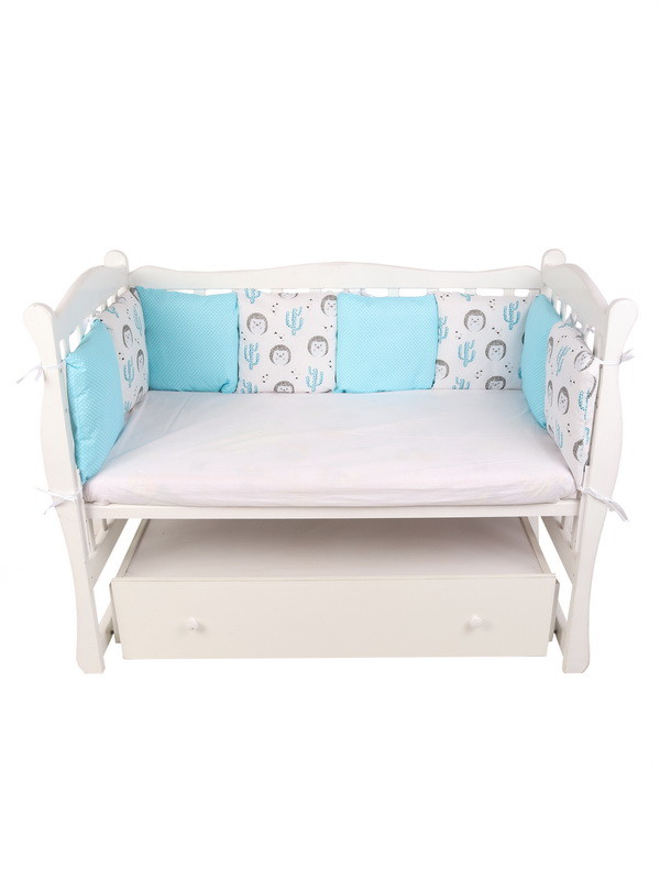 Комплект бортиков изготовлен из премиального хлопка. Ткань не раздражает нежную кожу малыша и долго сохраняет первоначальный вид. Бортики имеют хорошую вентиляцию.