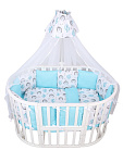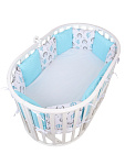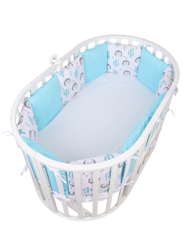 - Бортики подходят для любых кроваток (прямоугольных, овальных, круглых) с периметром стенок до 360 см