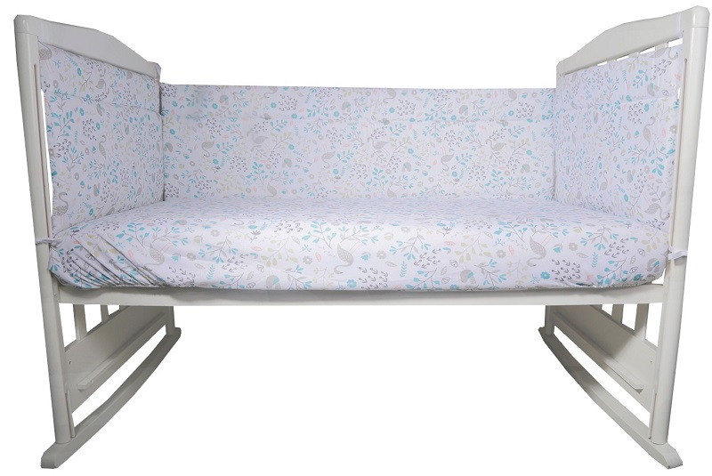 Бортик в детскую кроватку состоит из четырех частей и закрывает весь периметр кроватки, защитит ребенка от возможных ударов о деревянные или металлические части кроватки.