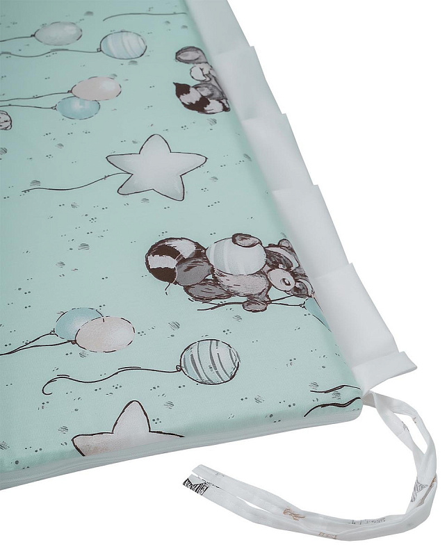 Надёжное крепление на завязках для безопасной фиксации в кроватке.