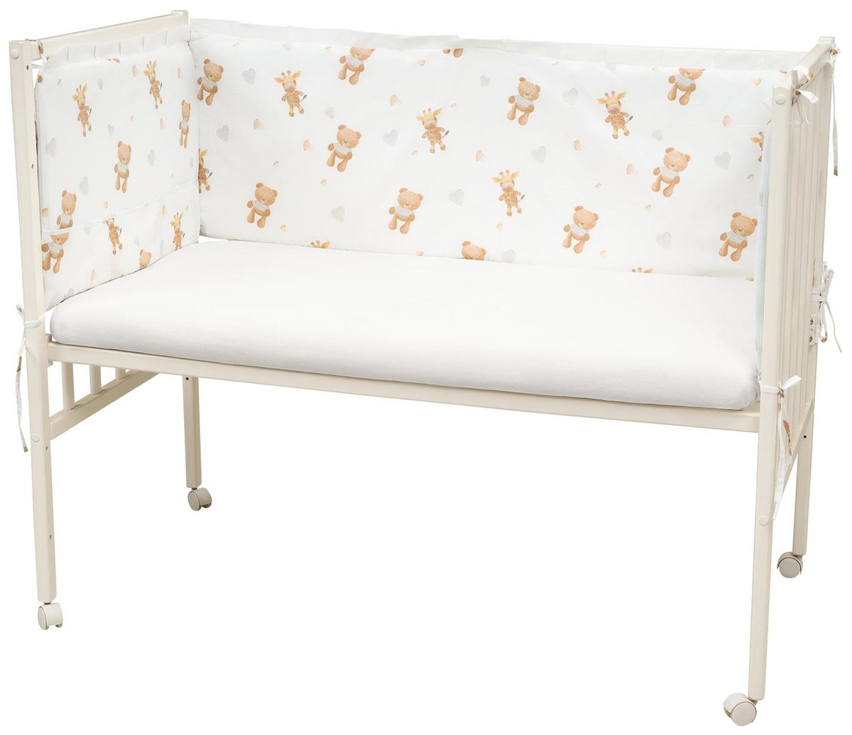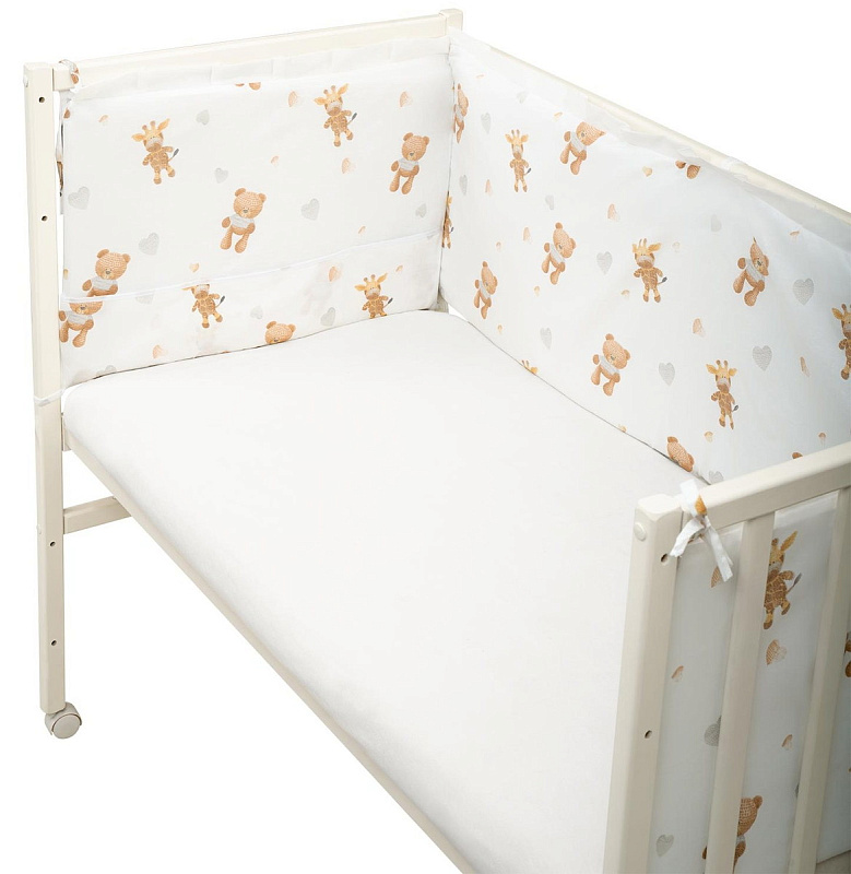 Борт в кроватку Indigo Лесные зверята из 4-х частей, с рюшкой, чехлы съемные, поплин мишки