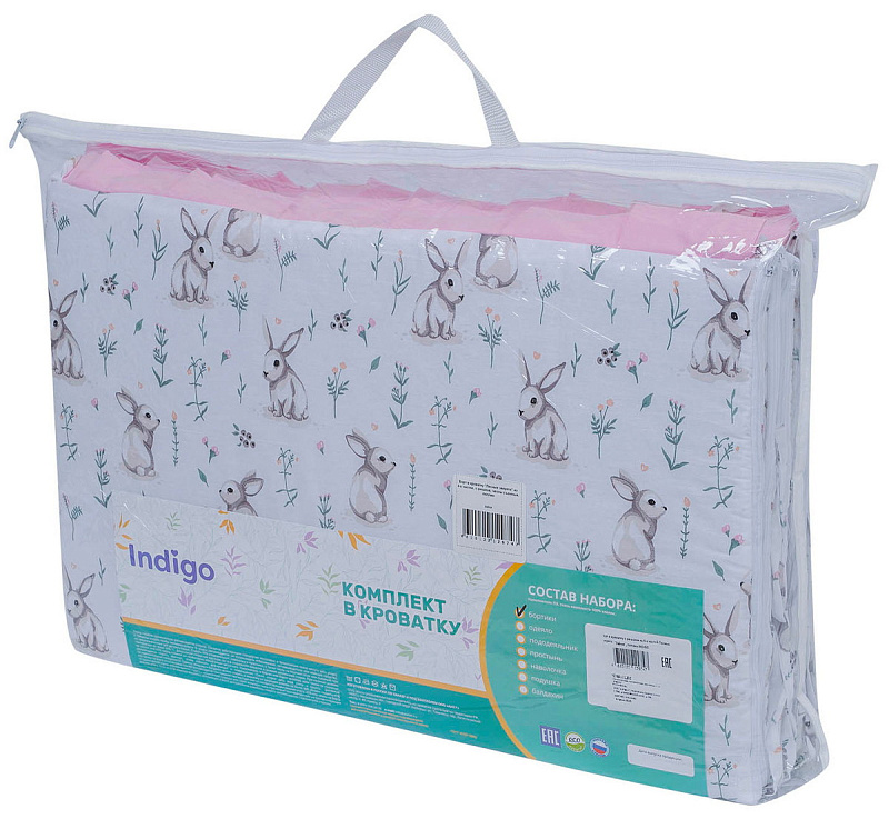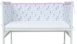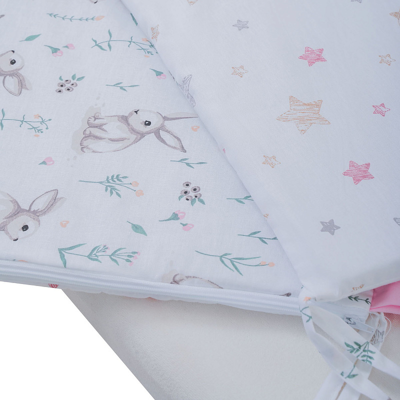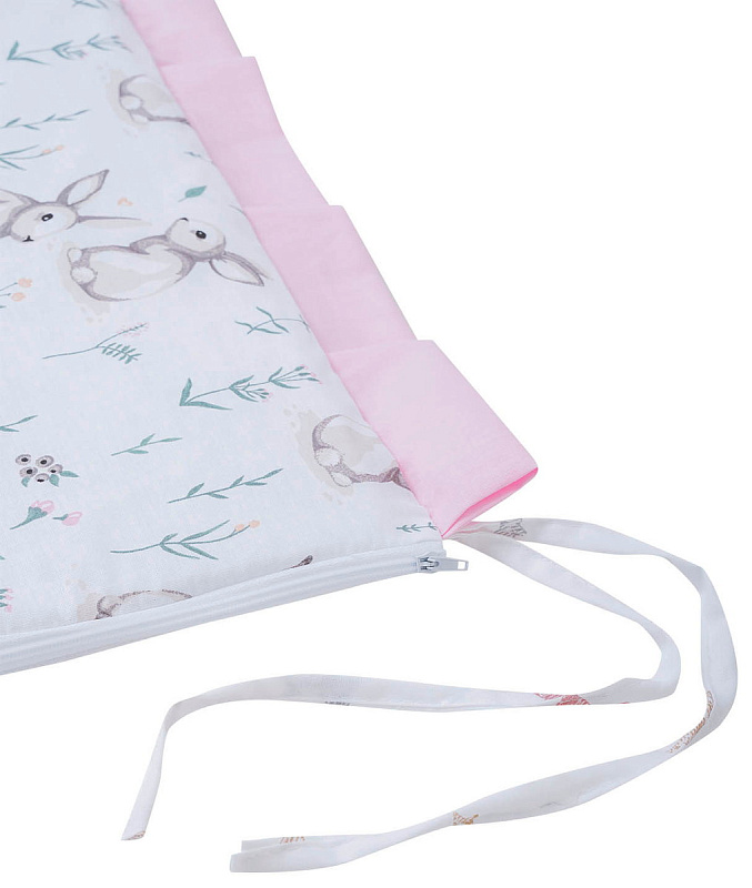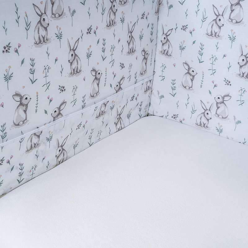 Борт в кроватку Indigo Лесные зверята из 4-х частей, с рюшкой, чехлы съемные, поплин зайки