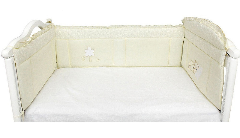 Бортик из 4 частей идеально подойдет для классической кроватки. Выполнен из бязи - это плотная хлопчатобумажная ткань, мягкая на ощупь. Она обладает высокой износостойкостью и прекрасно стирается. Бортик в кроватку выполнен из высококачественных материалов. Бортик защитит малыша от сквозняков. А когда ребенок подрастет и начнет вставать самостоятельно - защитит от ударов при возможных падениях.