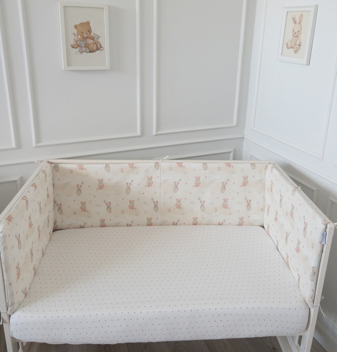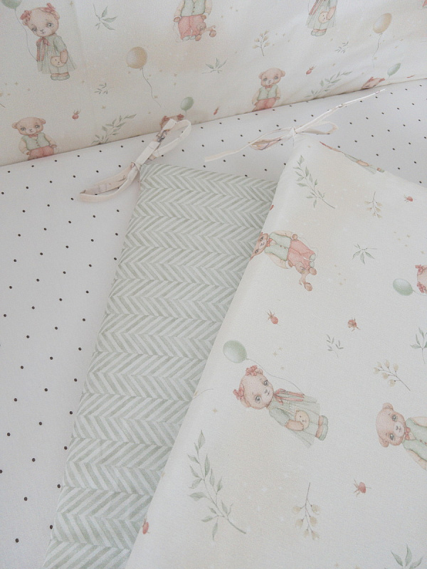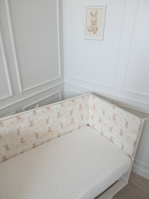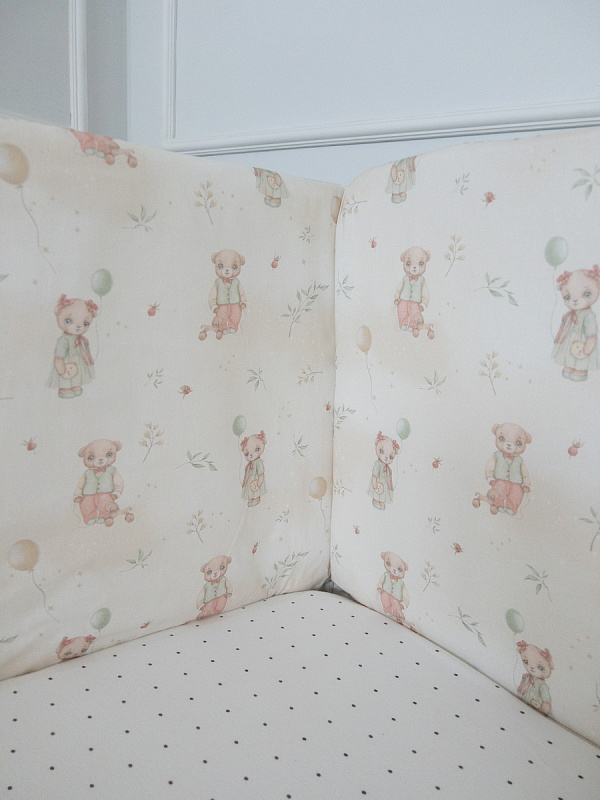 Все бортики имеют полностью съемные чехлы, что позволяет легко поддерживать чистоту и ухаживать за ними. Ткань из 100% хлопка обладает отличной воздухопроницаемостью и мягкостью, что особенно важно для чувствительной кожи младенца.