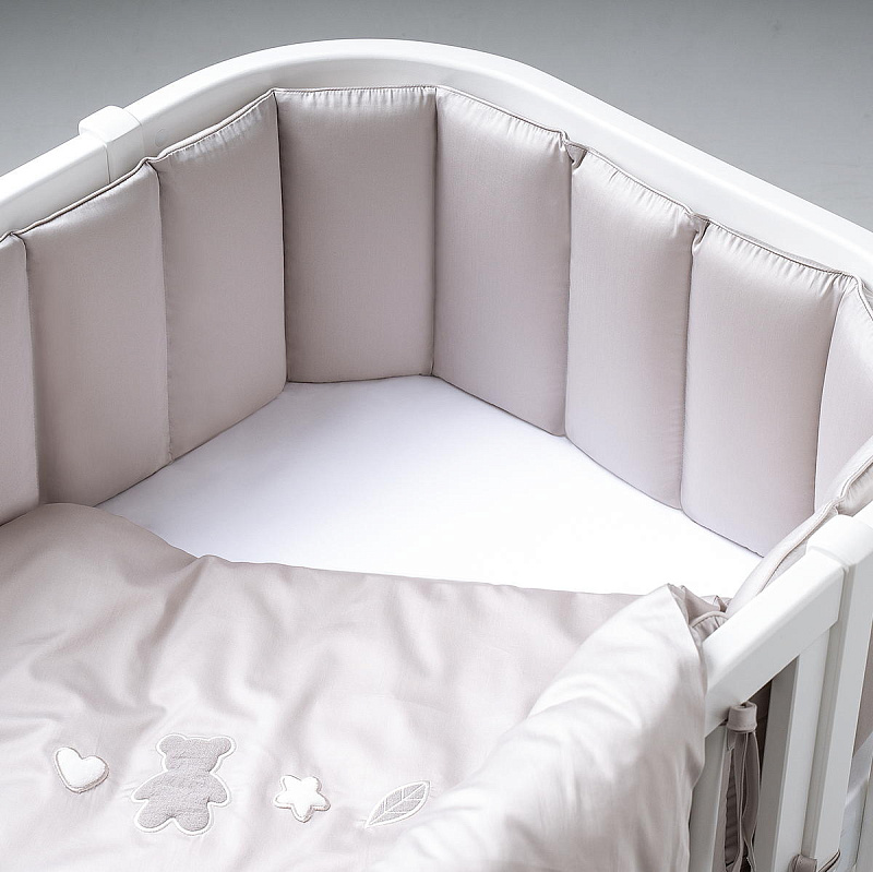Универсальные фенс-бортики Sateen Collection из сатина ТС300 подходят для детских кроваток различной формы - с закругленными углами, круглых, овальных, прямоугольных.