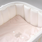 Внутреннее наполнение бортиков - гипоаллергенный материал холлкон. Подушечки из холлкона хорошо пропускают воздух, прекрасно держат форму и не деформируются в процессе эксплуатации.