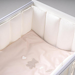 Для удобства использования бортики состоят из 4-х частей: 2 полуборта из 9-ти подушечек и две части из 4-х подушечек. В комплект дополнительно входят 2 части из 2-х и 1-ой подушечек. Элементы крепятся к кроватке лентами-завязками. Вы можете ставить в кроватку столько частей, сколько необходимо.