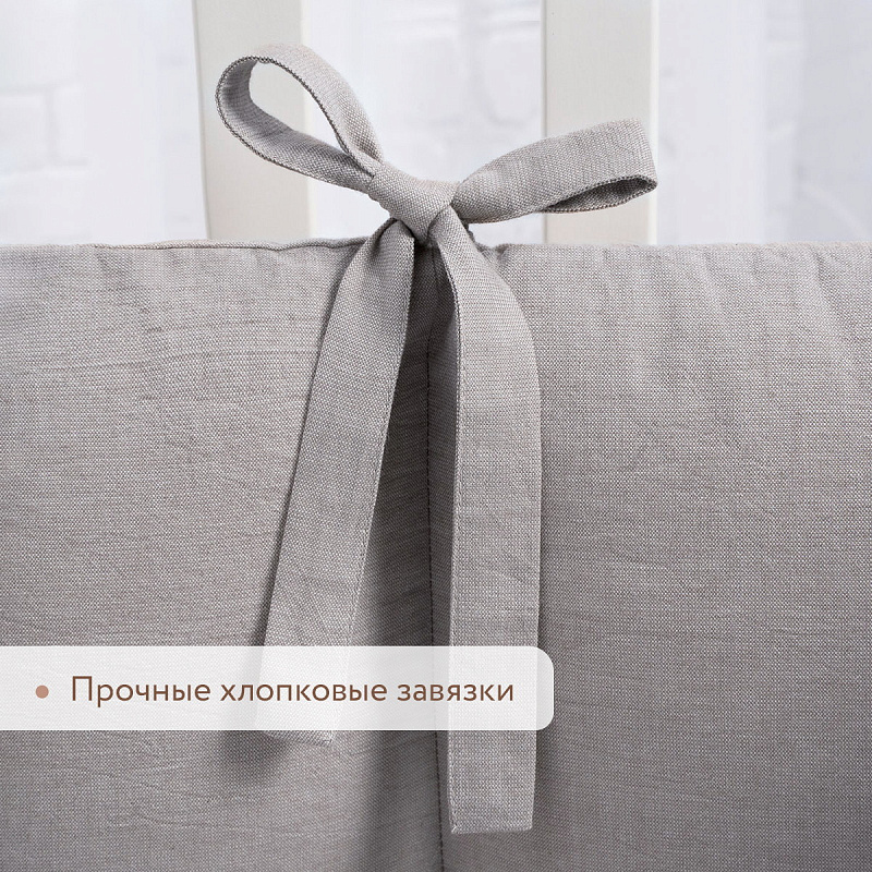 - крепятся к кроватке при помощи прочно пришитых завязок