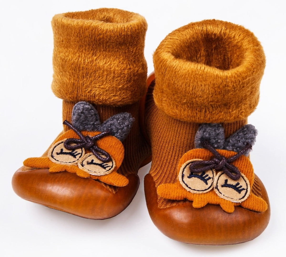 Ботиночки-носочки детские Amarobaby First Step Lil Puff с дышащей подошвой коричневый 21