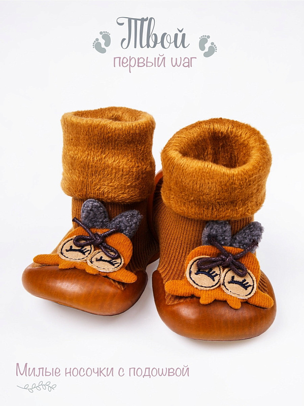 Ботиночки-носочки детские Amarobaby First Step Lil Puff с дышащей подошвой коричневый 21Нет оценокХарактеристики