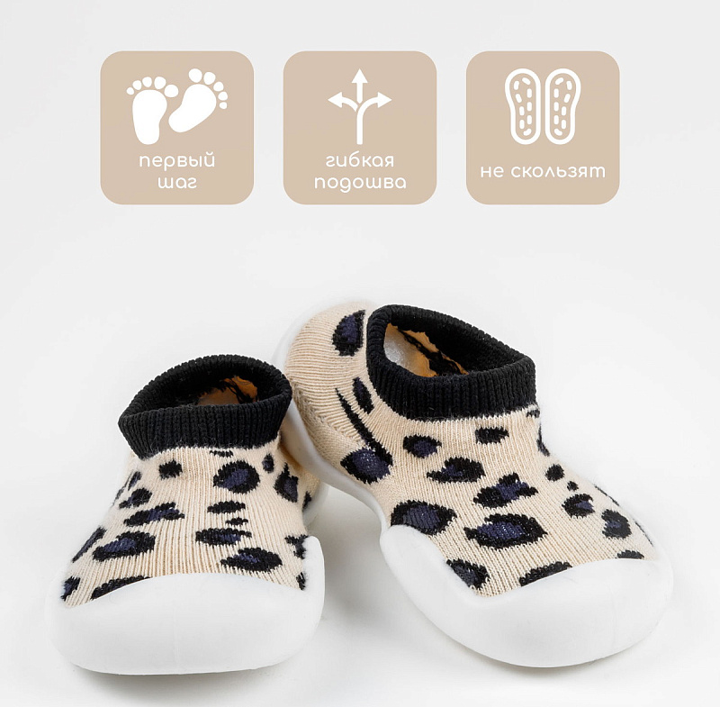 Ботиночки-носочки детские AmaroBaby First Step Pure Light Leo с дышащей подошвой светло-бежевый 21