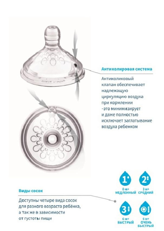 В наборебутылочка антиколиковая 260 мл NATURAL NURSING; соска силиконовая медленный поток (0+).