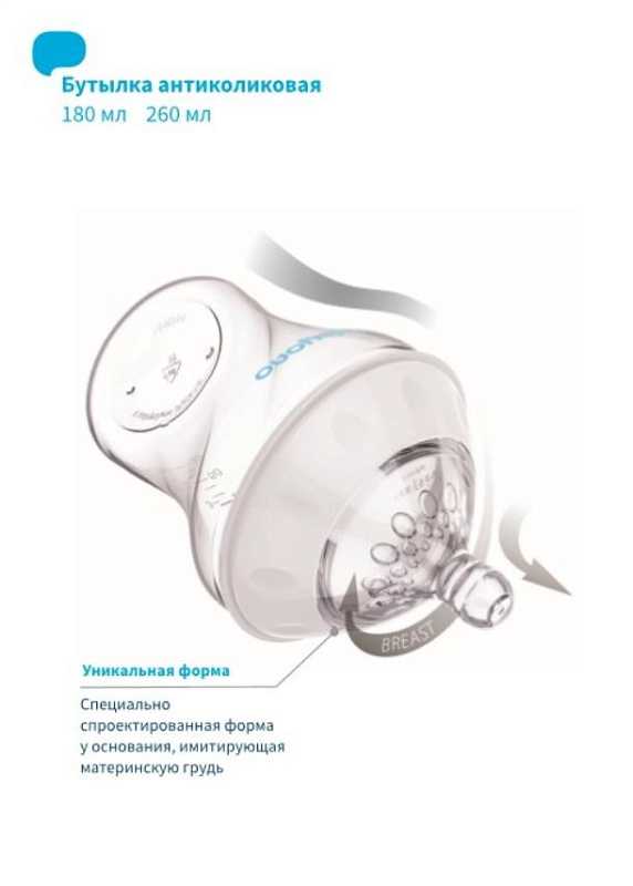 Самая "женственная" бутылка на рынке – специально разработанная форма у основания, имитирующая грудь мамы.