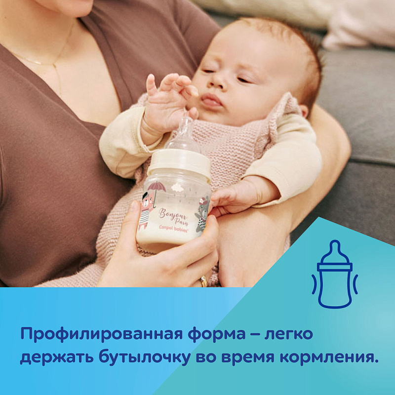 Антиколиковая бутылочка кормления Canpol Babies Bonjour Paris была создана специально для детей с первых дней жизни. Это гарантирует легкое начало грудного вскармливания и позволяет сочетать грудное вскармливание и кормление из бутылочки.